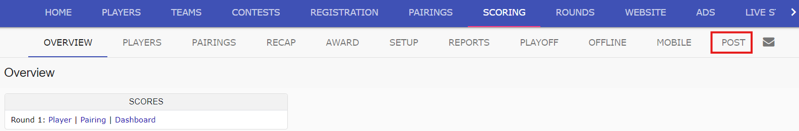 At the conclusion of the tournament, go to the scoring tab, and the sub- tab post:
