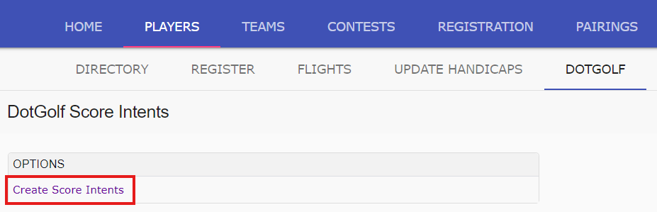 With a DotGolf integration, score intents must be created for scores to post successfully. A score intent is when a player pre-registers their intention to submit a score for handicap purposes before the start of a round.
