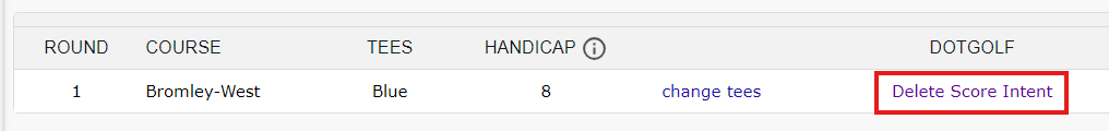 In a tournament where DotGolf is being used, and score intents have already been created, there may come a time where a score intent may need to be deleted. This would typically come up if the player is not intending to post the score, or the player no longer has an active handicap.