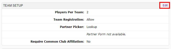 Scroll down the the "Team Registration" settings, and select edit: