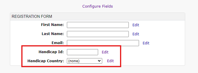 For team competitions, registration settings play a big part in getting the correct player and handicap information for each participant. With a DotGolf integration, administrators can setup registration, so players can add the handicap ID, and Handicap country of the partner onto the registration form. Follow the steps below.