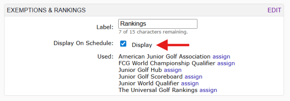 Once enabled, ranking providers will appear on your public schedule, showing which events are recognized.