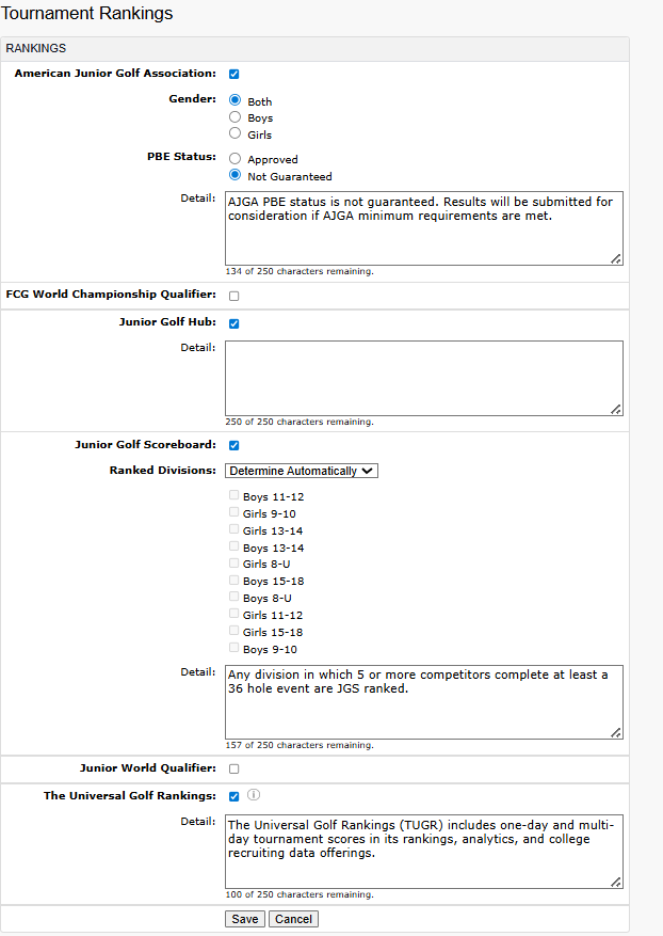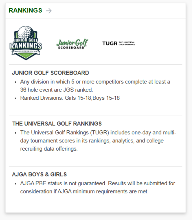 The selected rankings will appear on the tournament’s Information Page, giving players clear visibility into rankings for that event.